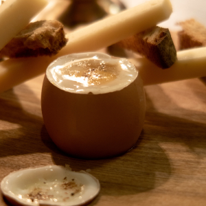 Si la carte du Café Terroir a pris des orientations bistronomiques, voire gastronomiques, il y a un plat indéboulonnable qui fait le bonheur des habitués et des petits nouveaux depuis le début : l’œuf à la coque accompagné de mouillettes au beaufort de 24 mois.