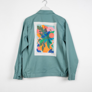 MUSHA KOOAvec sa marque Bisart, Théo réunit art, mode et écologie en créant des pièces uniques réalisées à partir de vêtements de seconde main de qualité, customisés avec des œuvres sérigraphiées d’artistes. Notre coup de cœur ? Une veste de travail japonaise avec une illustration de Piment Martin.